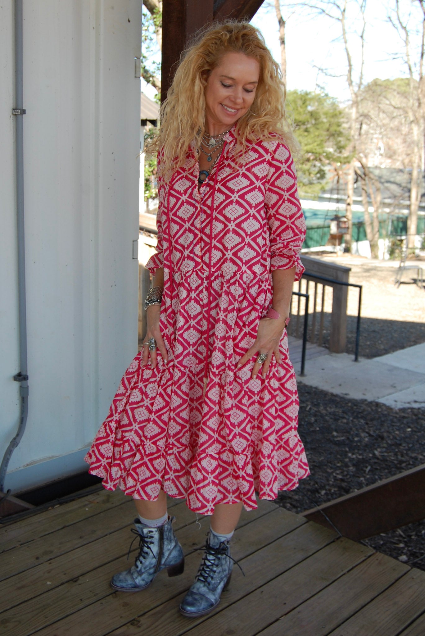 To maintain quality, this Azima Dress in Magenta is best when washed in cold water and line dried.