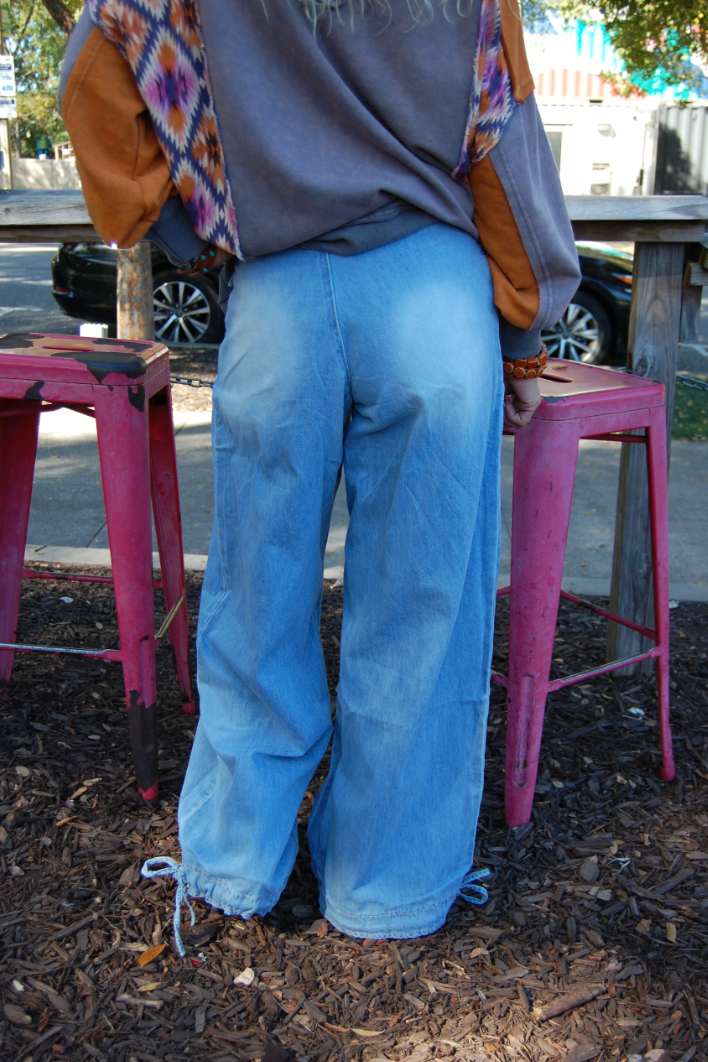 To maintain quality, these Ankle Drawstring Wide Pants in Light Wash are best when hand washed cold, with like colors, and laid flat to dry.