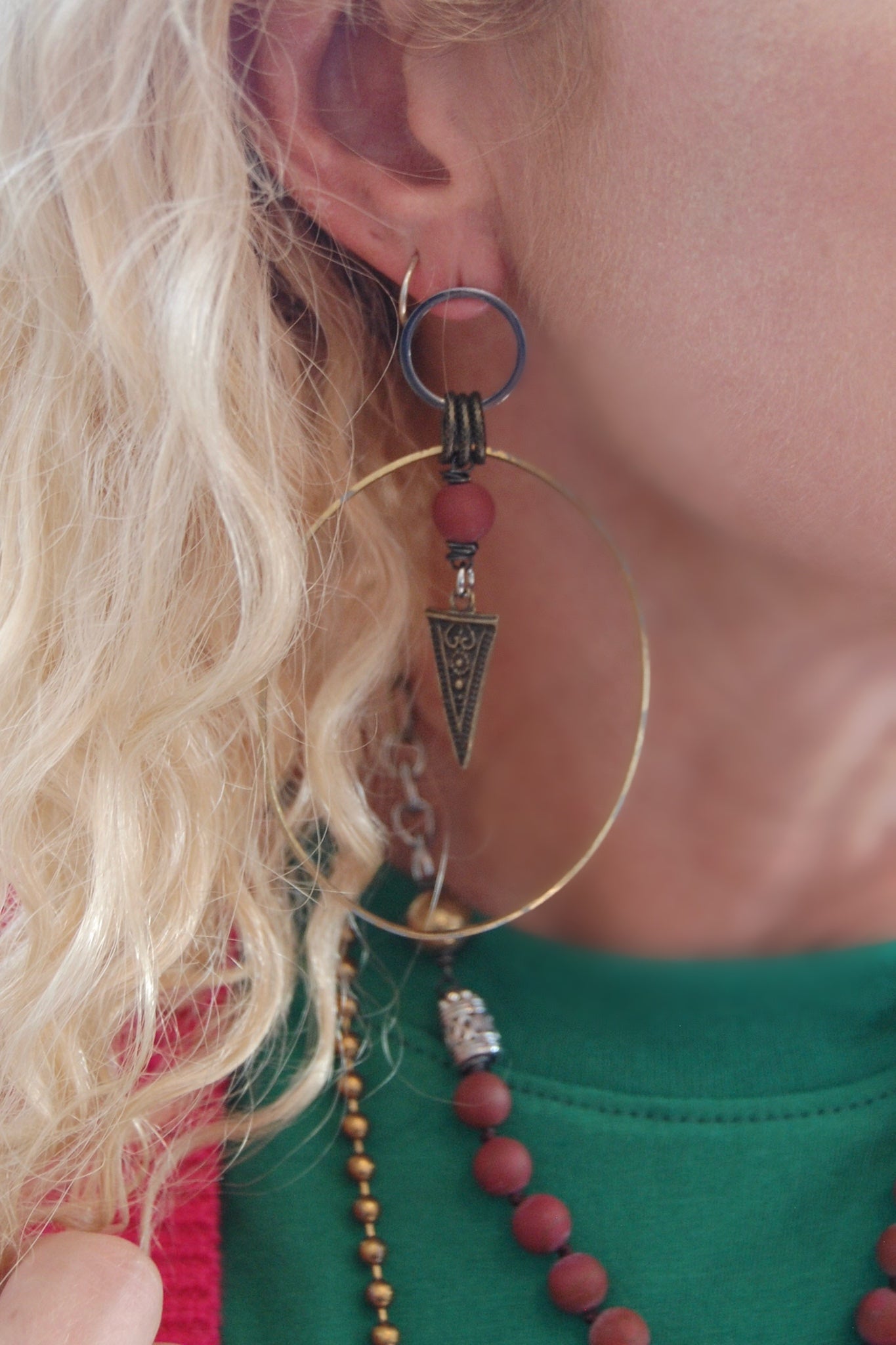 Our Spirit Lala Boho: 2 Circle Silver & Gold Diamond Drop Earrings in Red Jasper feature:
