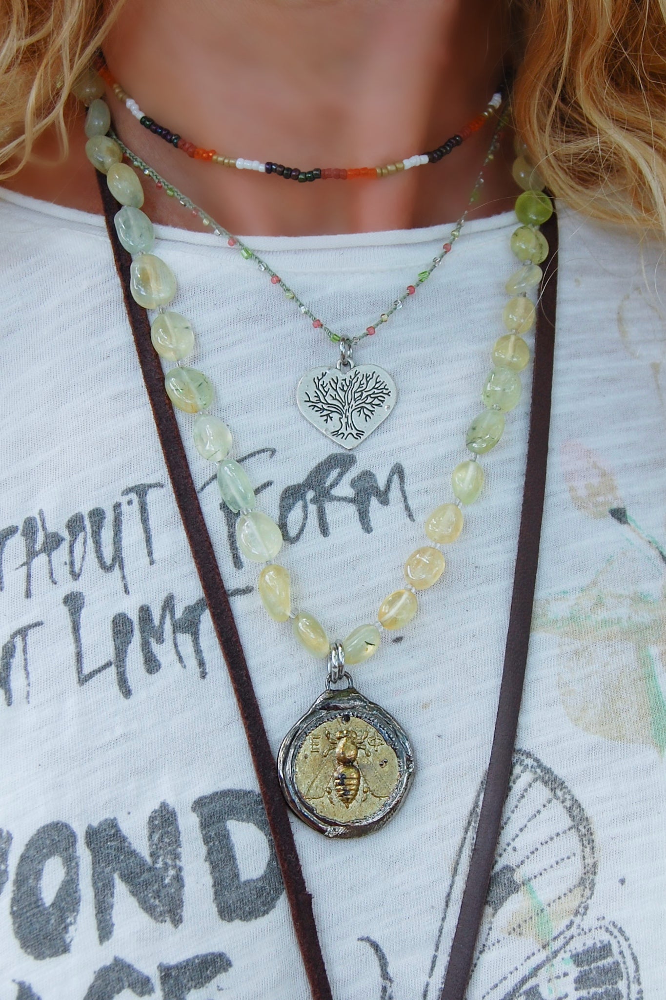Spirit Lala Vintage Coin: Corded Bee Medallion Necklace