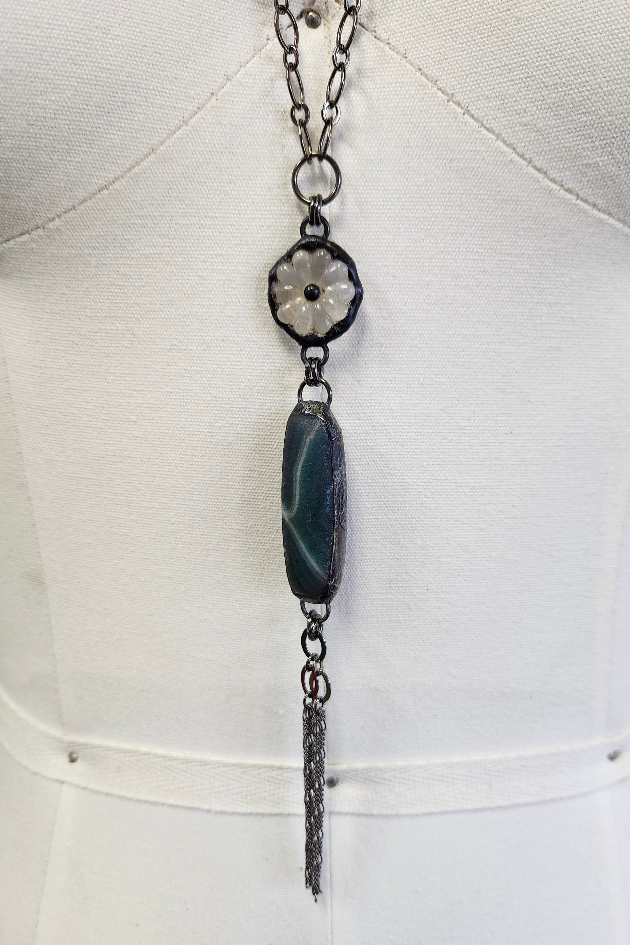 One of a Kind: Gray Crystal & Stone Necklace