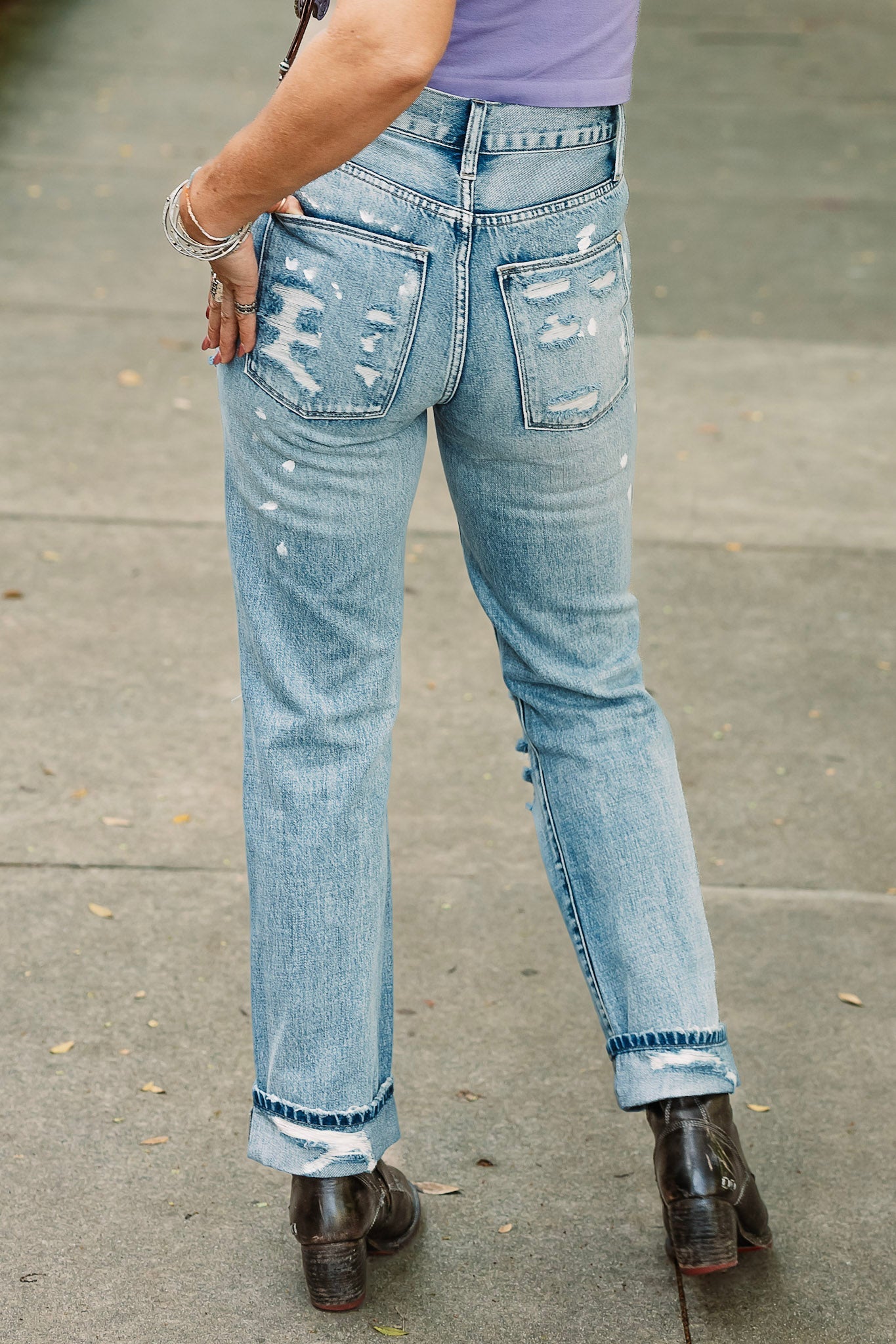 Our In Distress Vintage Jeans in Medium Wash are the perfect staple and everyday bottoms to add to your closet, and or any on-trend bohemian style outfit! Accompanying a trendy and stylish distressed & paint splatter up-the-leg detail, rolled up cuff bottoms, and a 5 pocket styling, for all of your personal go-to items, these jeans will be sure to be one of your faves!