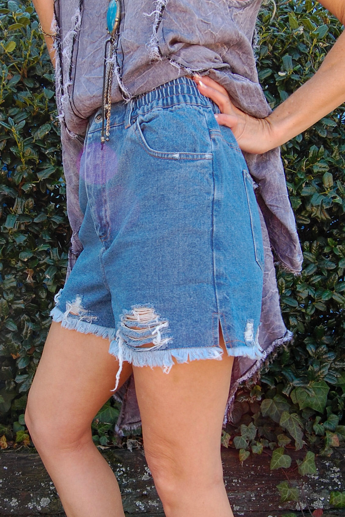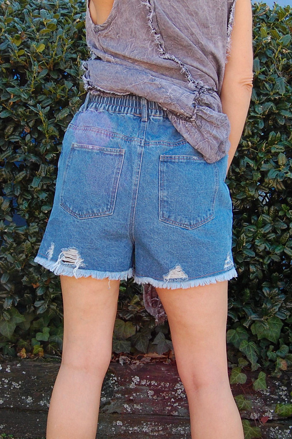 The Stretchy Washed Denim Shorts in Indigo will be your favorite wardrobe staples! These Stretchy Washed Denim Shorts in Indigo features a stretchy waste band with raw edge detail in this beautiful Denim color. Paired with flats or heels, it's an elegant option for day or evening.