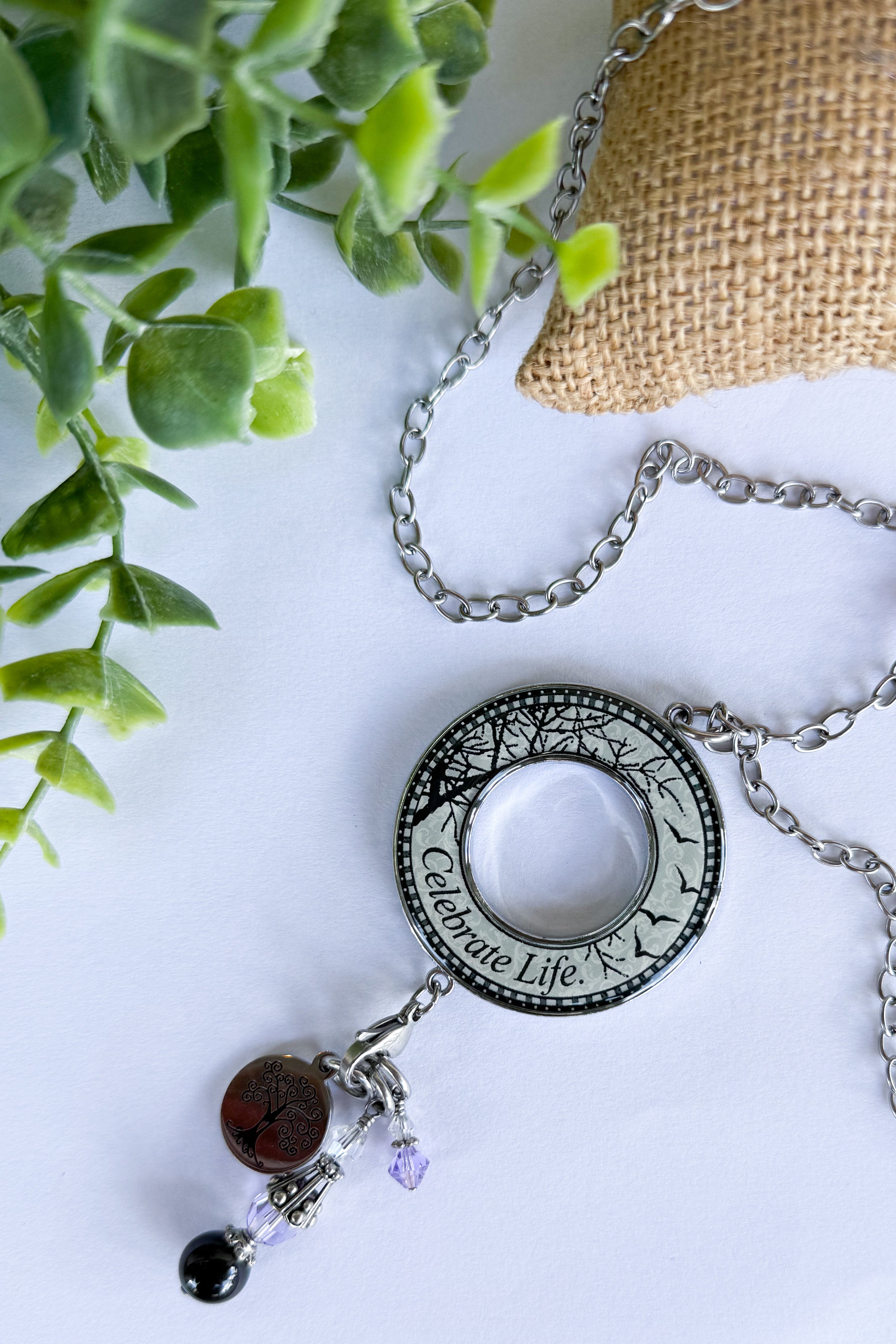 • Reversible pendant featuring the owner, Spirit's, own personal artwork, and inspiring quote on reverse side.