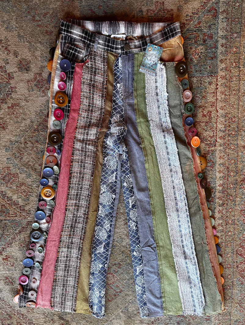 These Bust Your Button Jeans are the perfect stylish bottoms to add to your closet, and or any on-trend bohemian style outfit! They accompany a beautiful mutli colored threaded design with misc buttons down the sides of the pant legs. These pants give any look a stylish touch!