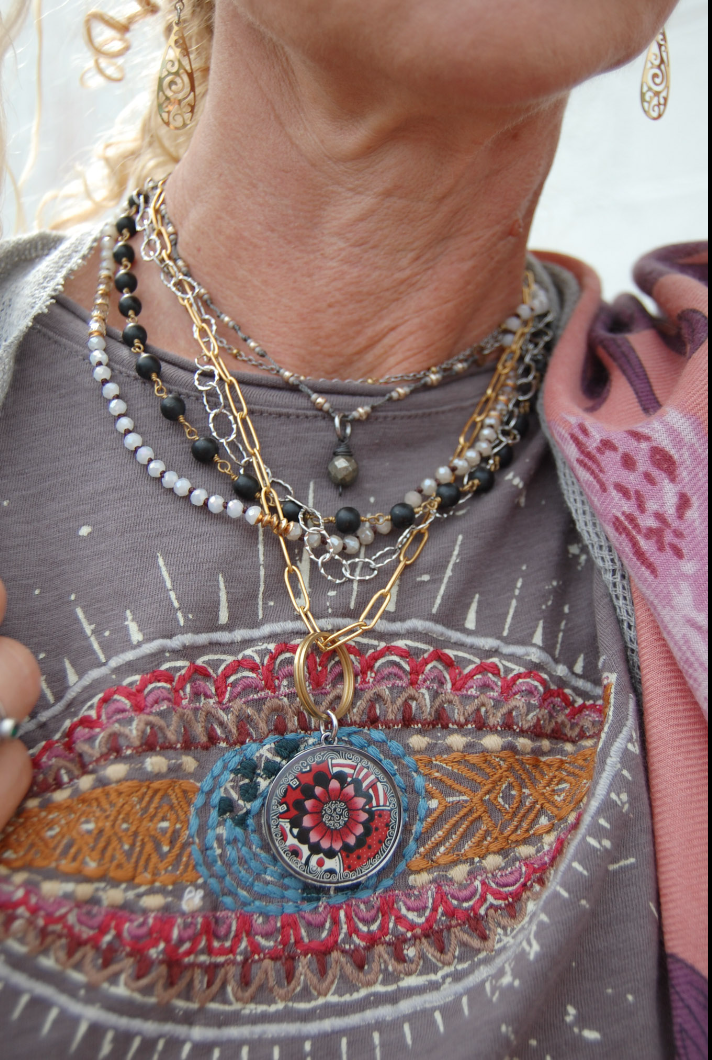 Spirit Lala: Red Black Flower Beaded Pendant Necklace