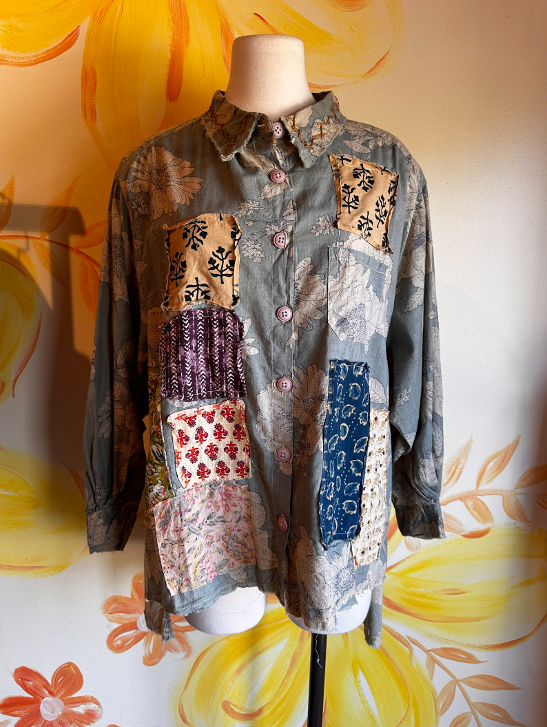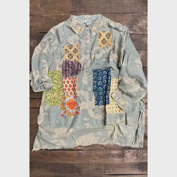 • This Full Bloom Top in Light Blue is the perfect stylish statement piece to add to your closet, and or any on-trend bohemian style outfit! Featuring a beautiful patchwork & a button up detail, you can pair this top under any kimono, cardigan, jacket, dress, or low-cut top! It's designed for durability, providing an ideal combination of comfort, stretch, and breathability.