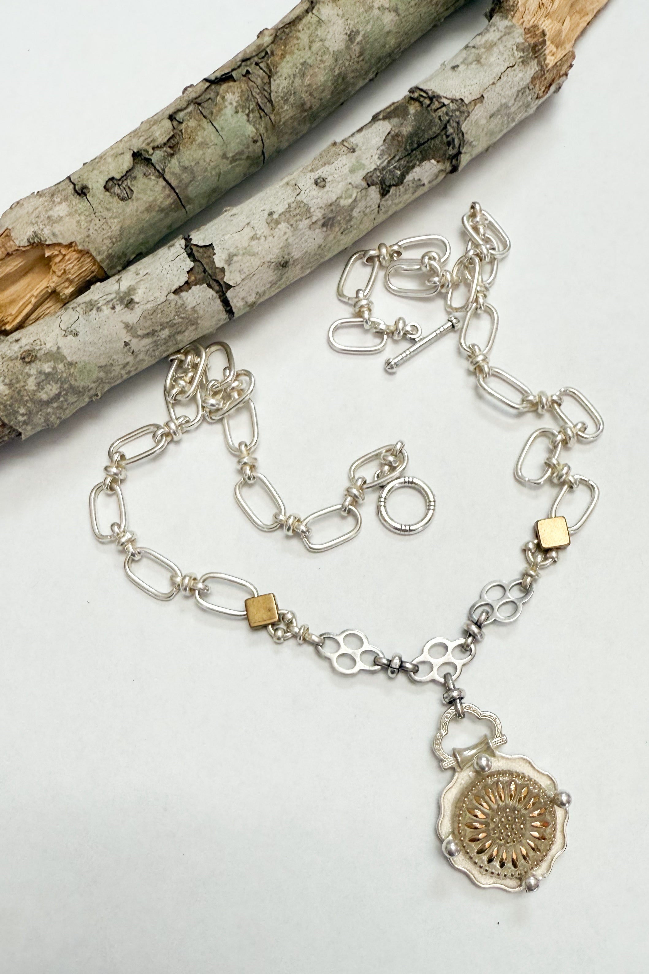 Our Vintage Silver Sunburst Button Choker is the perfect accessory to add to any on-trend bohemian style outfit! Layered with any of our many statement necklaces, of your choosing, the Vintage Silver Sunburst Button Choker will be sure to be a wonderful addition to any necklace layering style!
