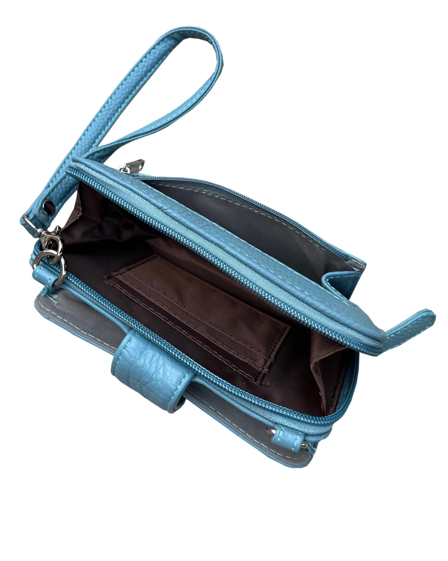 Our Prima Phone Pouch Wristlet is the perfect bag and unique touch to add to any on-trend bohemian style outfit! As an everyday purse, this Prima Phone Pouch Wristlet comes with a detachable wristlet & leather crossbody strap, a main compartment with zipper closure, 6 total credit card slots, a front throw pocket with leather over flap and magnetic snap button closure, and an additional backside zipper pocket. This versatile Prima Phone Pouch Wristlet will be a perfect addition to your closet!