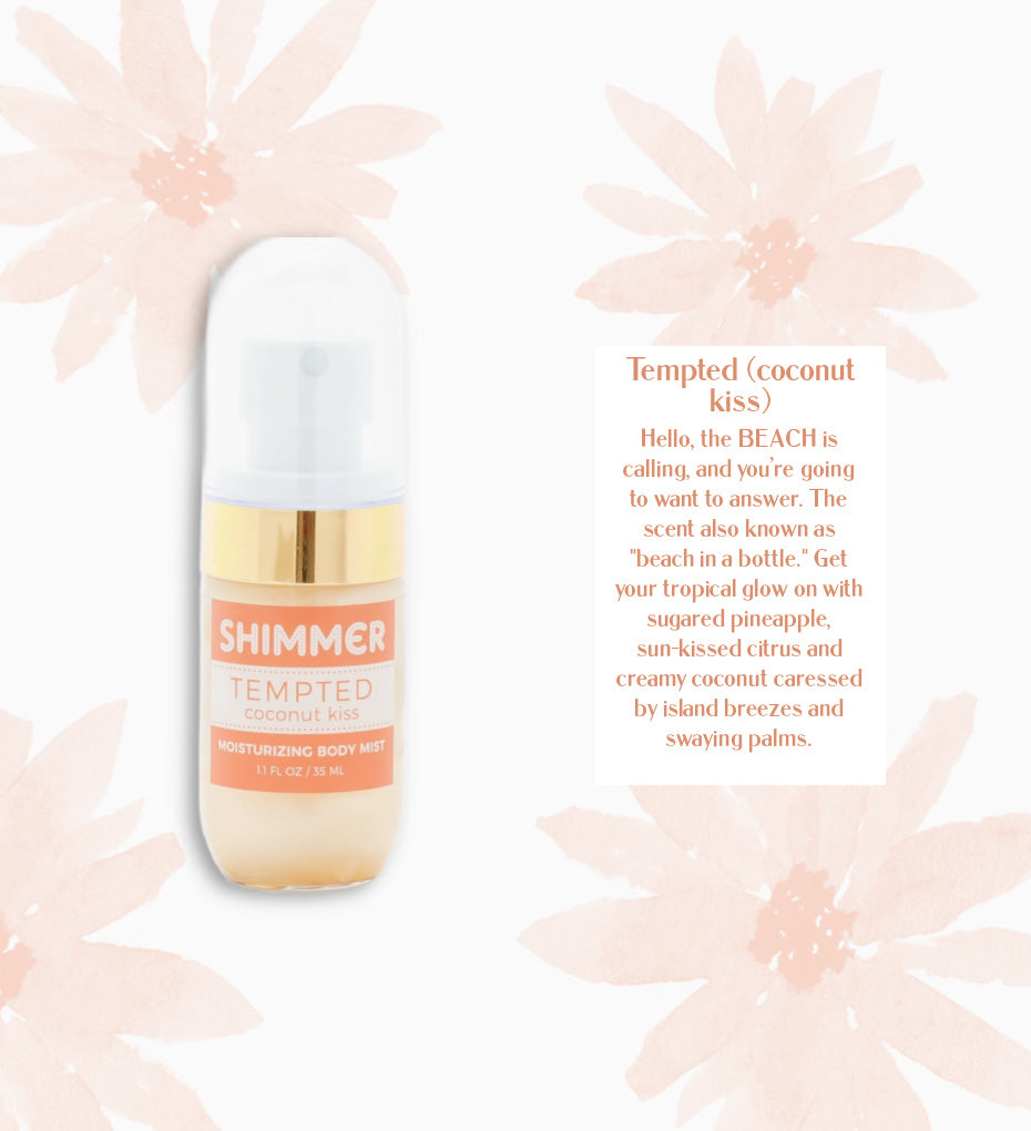 Boosted with: * Hyaluronic Acid - a powerhouse hydrator that leaves skin moisturized, supple, and youthful * Vitamin C - a potent but skin-friendly antioxidant that fights off free radicals to keep skin healthy and glowing Shake well (the shimmer settles in the bottle) & apply anywhere on skin that you want to shimmer! Perfect to highlight your summer tan. Spray on face, décolletage, arms, legs, anywhere!
