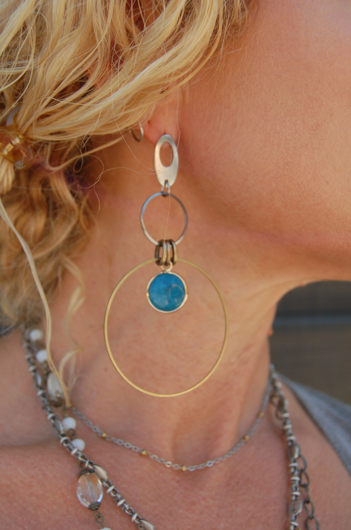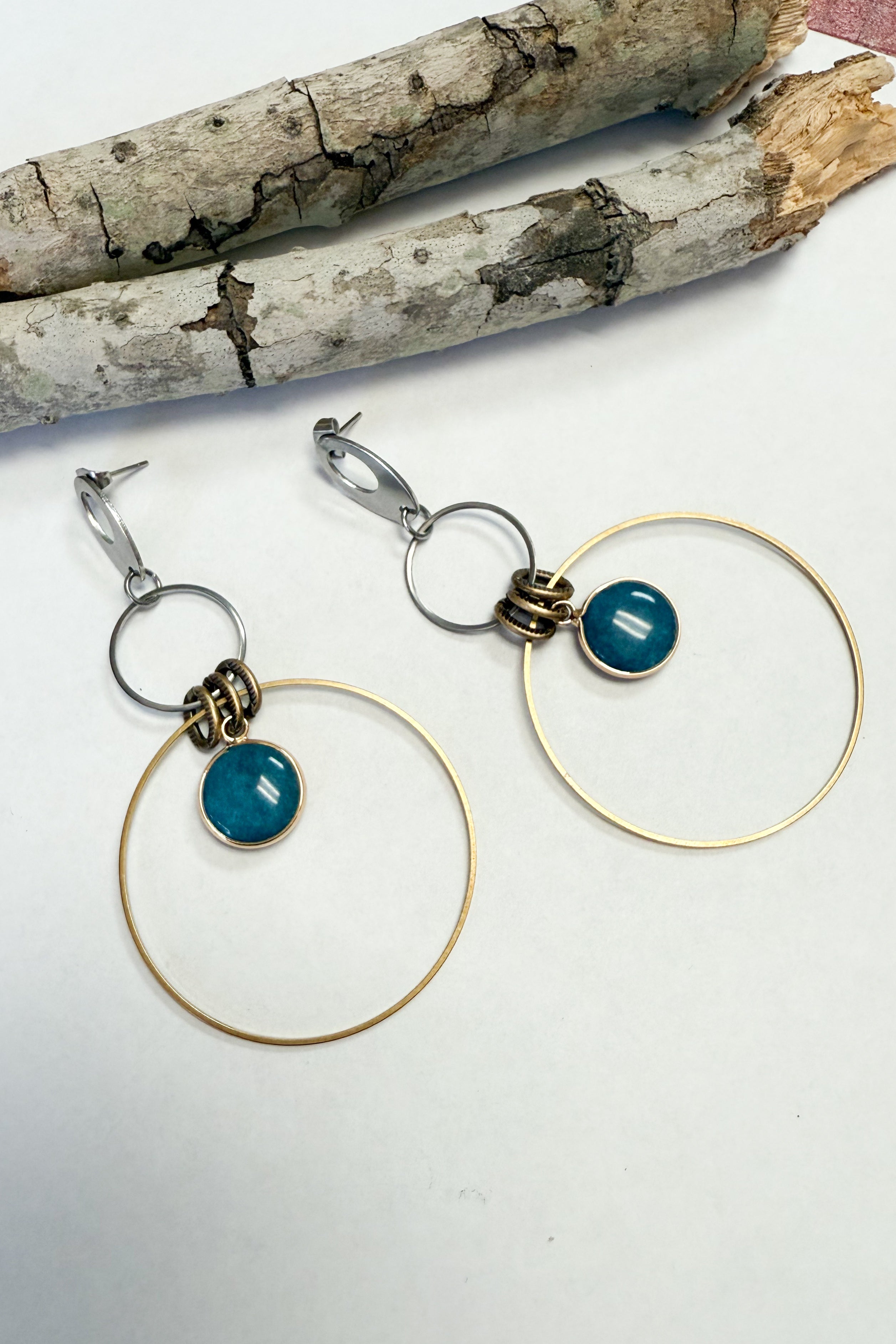 Oval 2 Circle Silver & Gold Earrings in Gold Turquoise