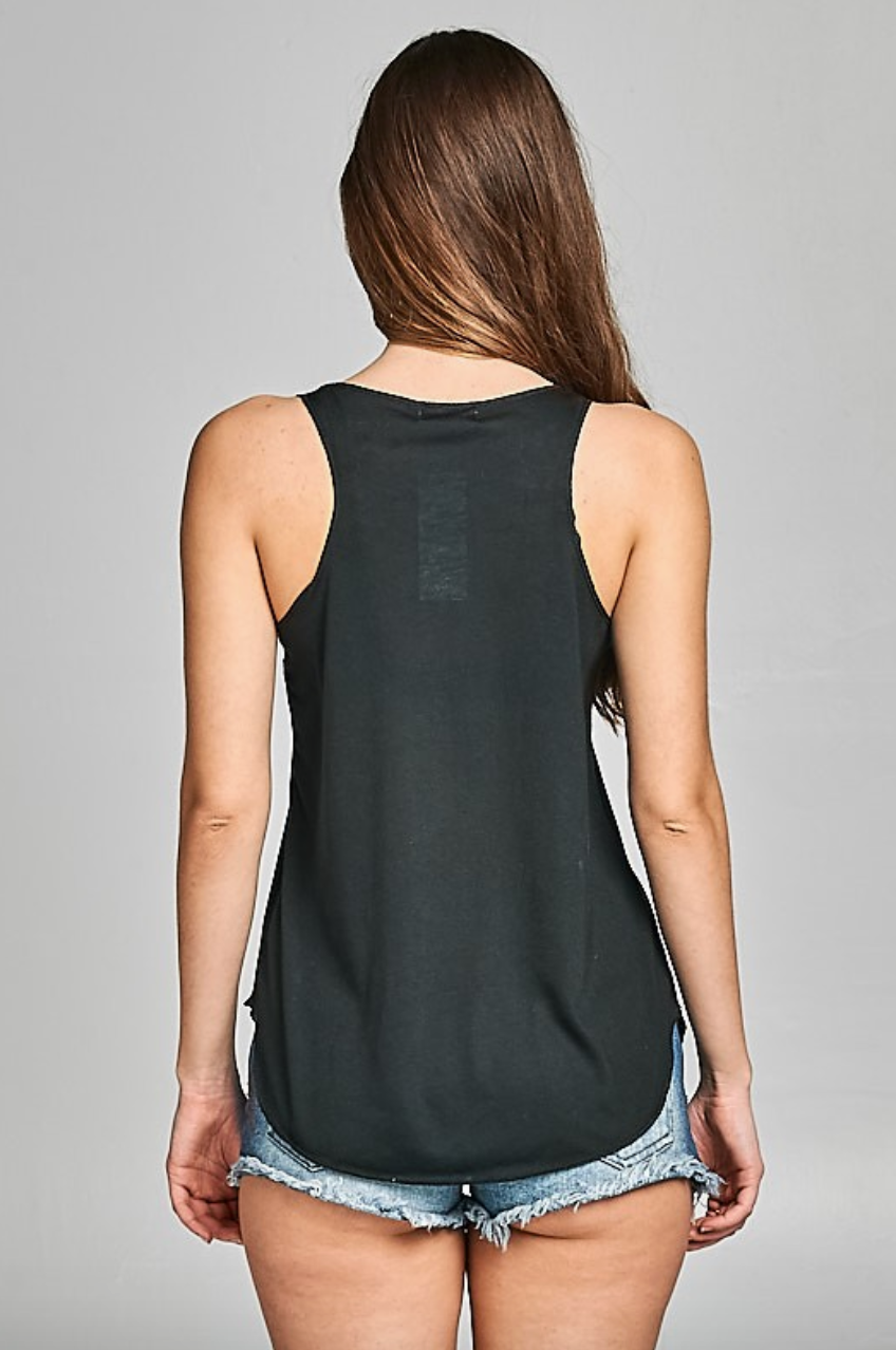 To maintain quality, this Boho Bull Graphic Tank Top in Black is best when washed in cold water and hung dry!