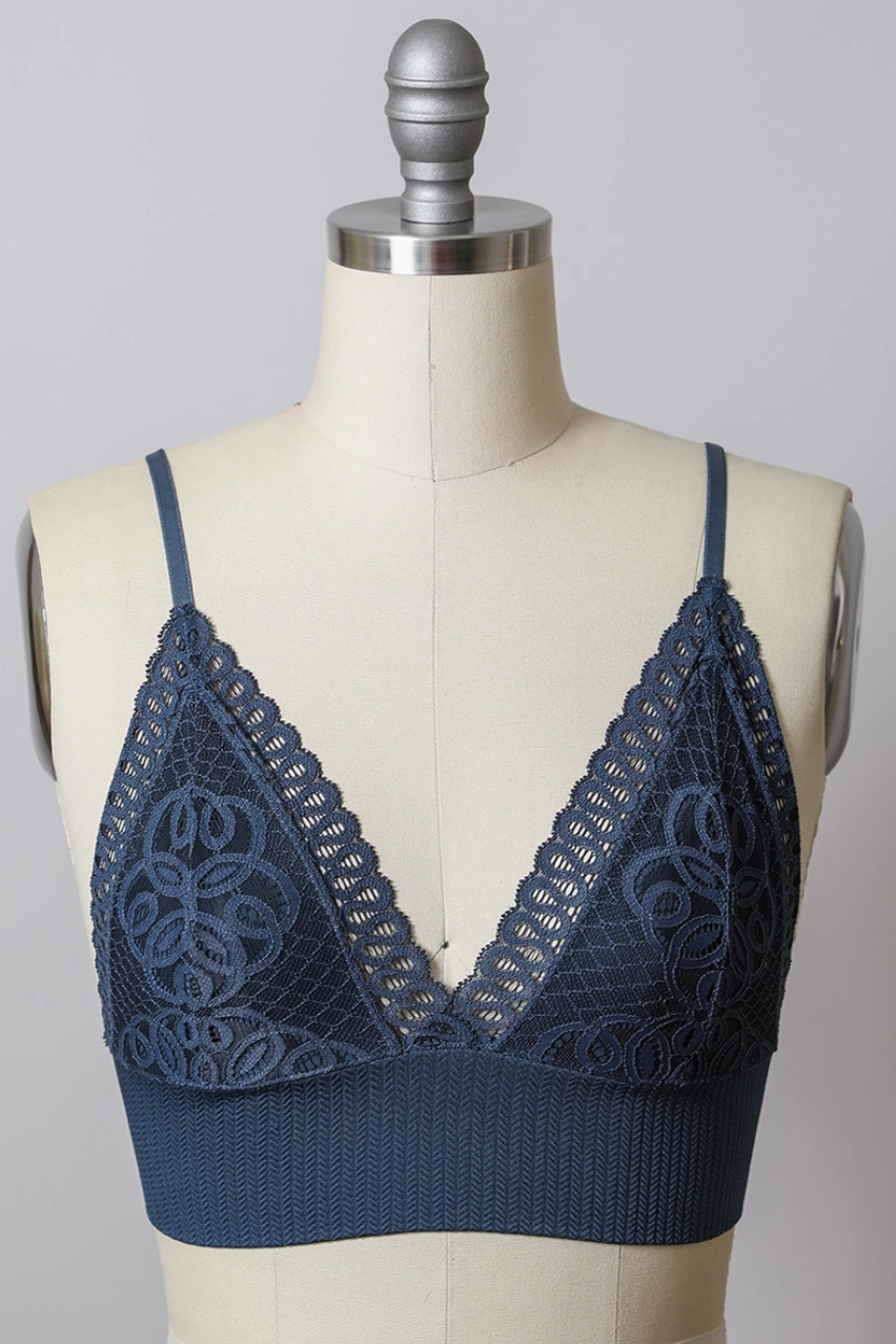 This stunning Lace Loop Brami in Grey Blue is the perfect addition to your undergarment selection! Features an easy pullover style, v-neckline, adjustable straps at the back, and the perfect amount of stretch, and a beautiful lace design. Our Lace Loop Brami in Grey Blue is comfy as can be and pairs perfectly under any tee, tank, loose fitting top, or cardigan!