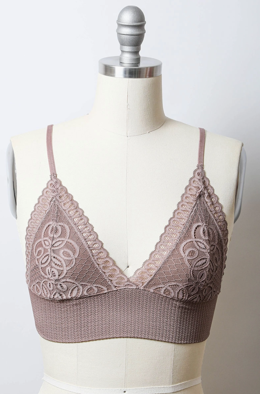 To maintain quality, this Lace Loop Brami in Mocha is best when machine washed in cold water and hung dry.